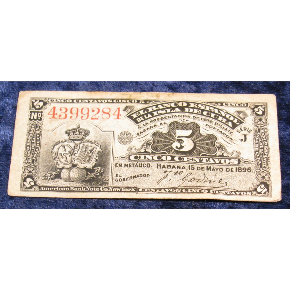 1401. May 15, 1896 Spanish Bank of the Island of Cuba Five Centavos note. F-12.