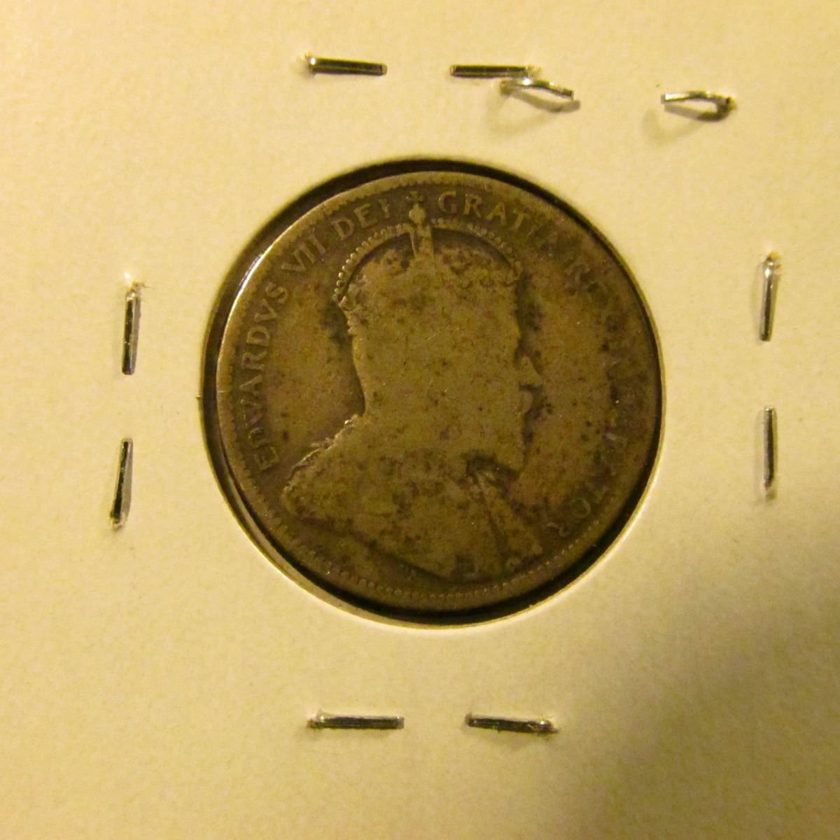 1908 Canada 25 Cents, G, low mintage semi-key date, value $12
