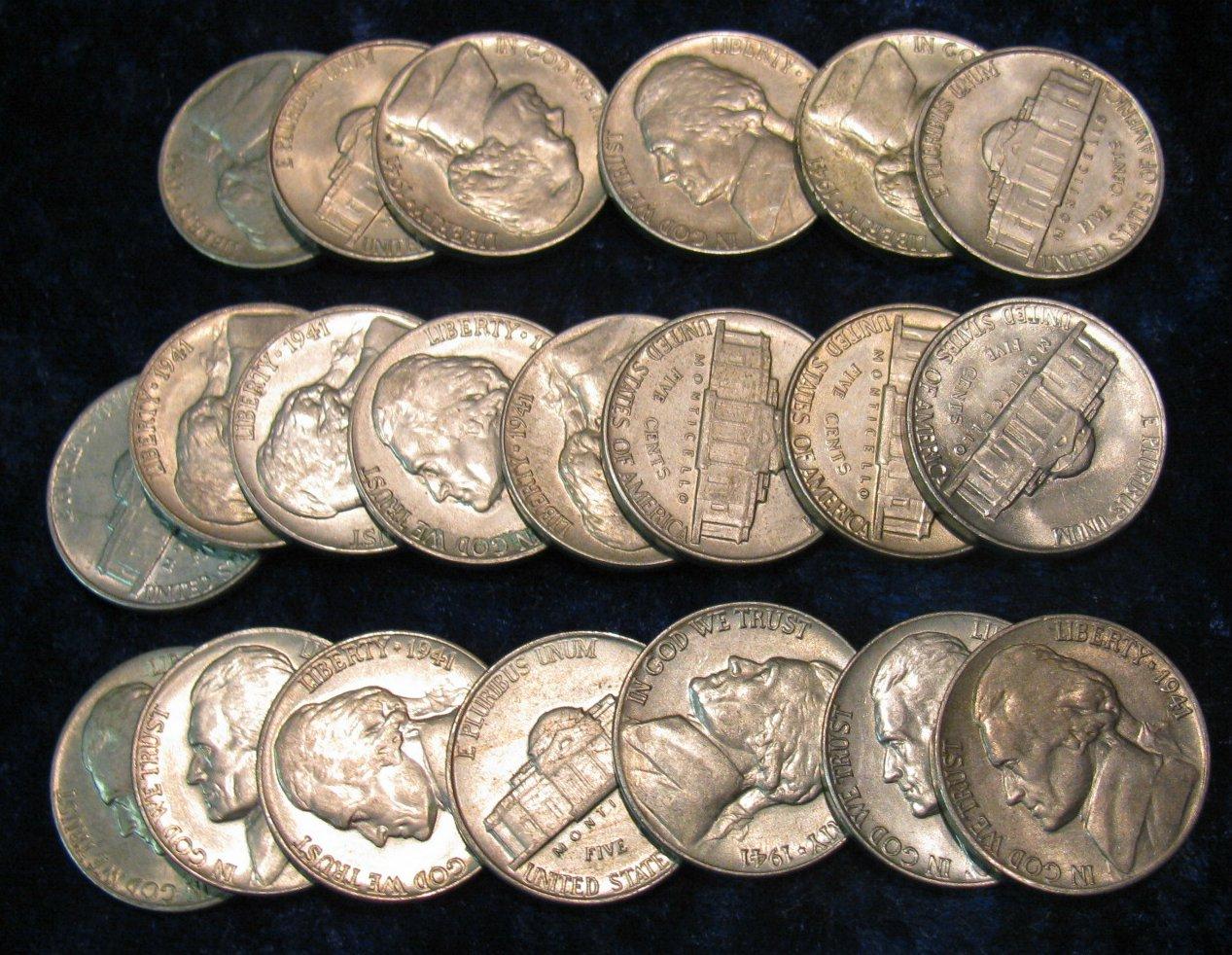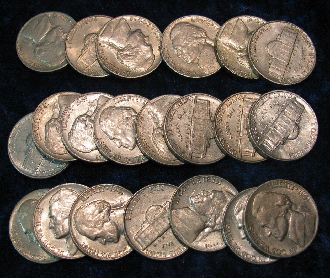 1405. (21) 1941 D Jefferson Type Nickels. BU