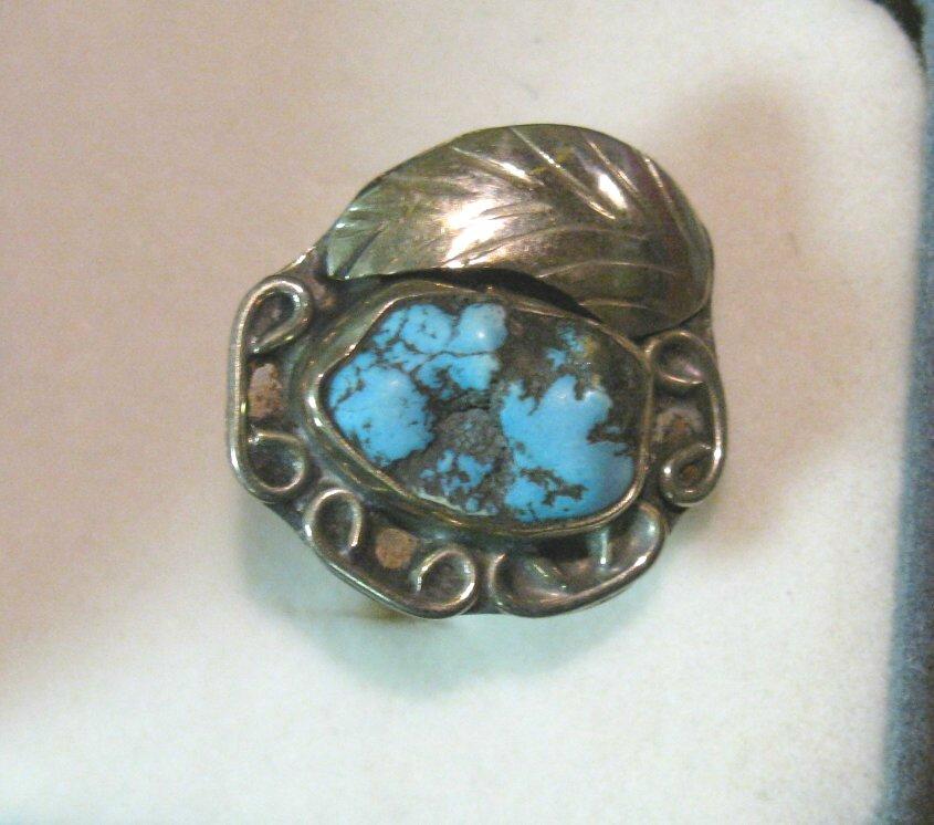 1405. Navajo style Sterling Silver Ring with Spider web turquoise.