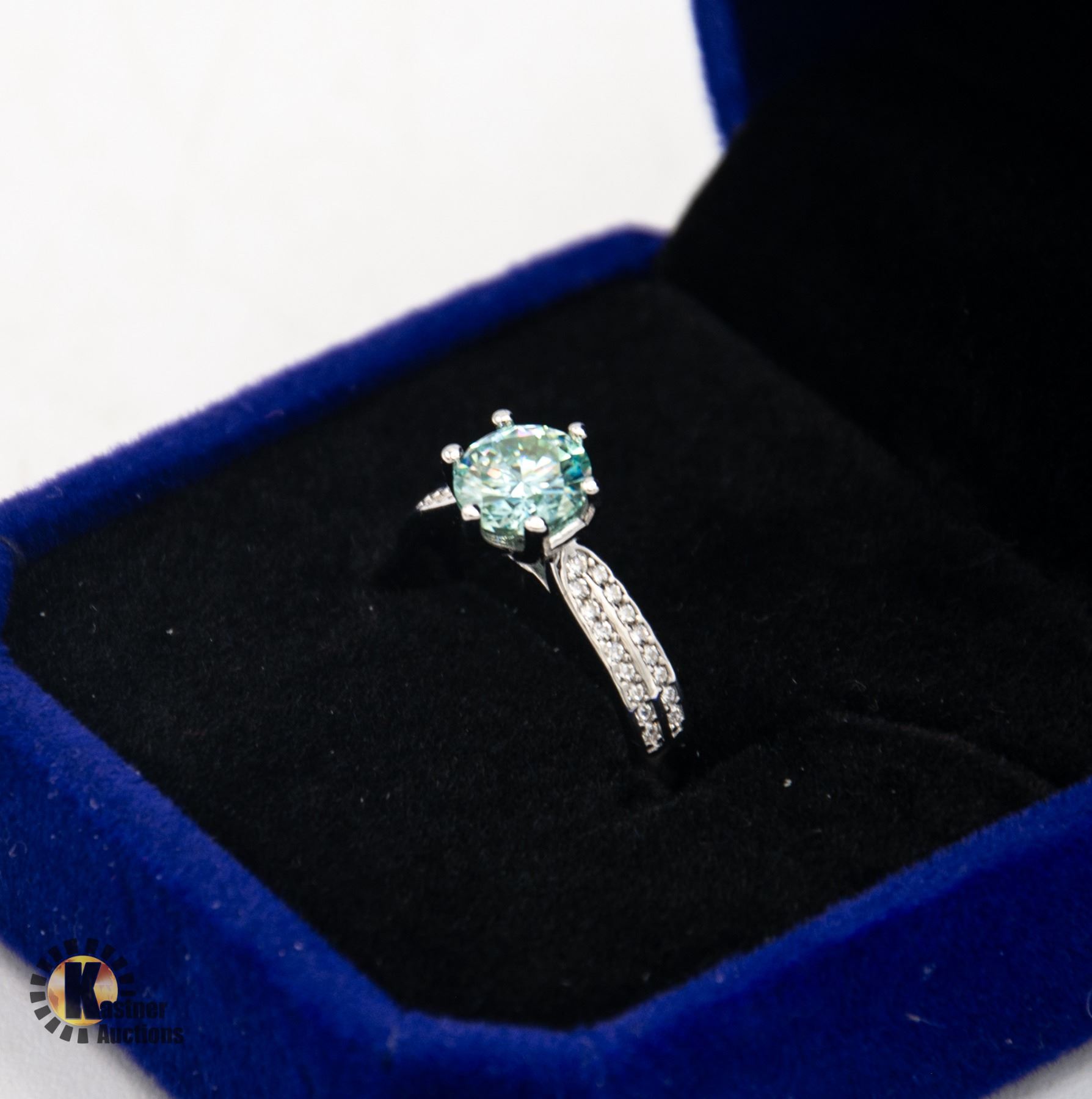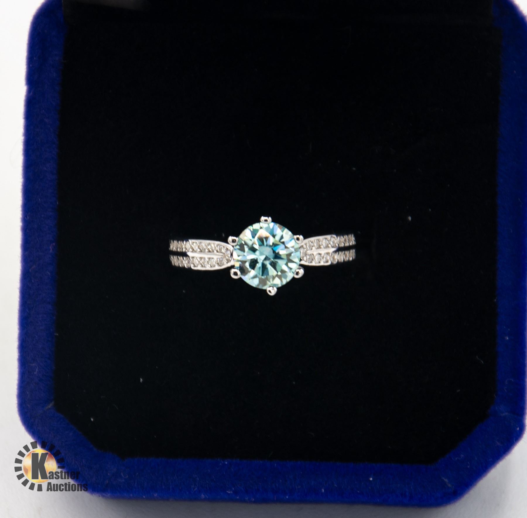 MOISSANITE STONE VVS INTENSE BLUE COLOR SET IN CENTER WITH 2 LINES PER SHANK OF ROUND CUBIC ZIRCONIA SET IN 925 SILVER RING SIZE 5 RETAIL VALUE $725.00 **ALL ITEMS MUST BE REMOVED BY 5PM SATURDAY, DECEMBER 21ST 2024. ALL REMAINING ITEMS WILL BE SUBJECT TO A $6.00 PER DAY STORAGE CHARGE. ANY ITEMS REMAINING AFTER MONDAY, JANUARY 6TH 2025 WILL BE CONSIDERED FORFEITED. NO REFUNDS WILL BE ISSUED FOR FORFEITED ITEMS. TO SCHEDULE A PICK UP APPOINTMENT CLICK HERE