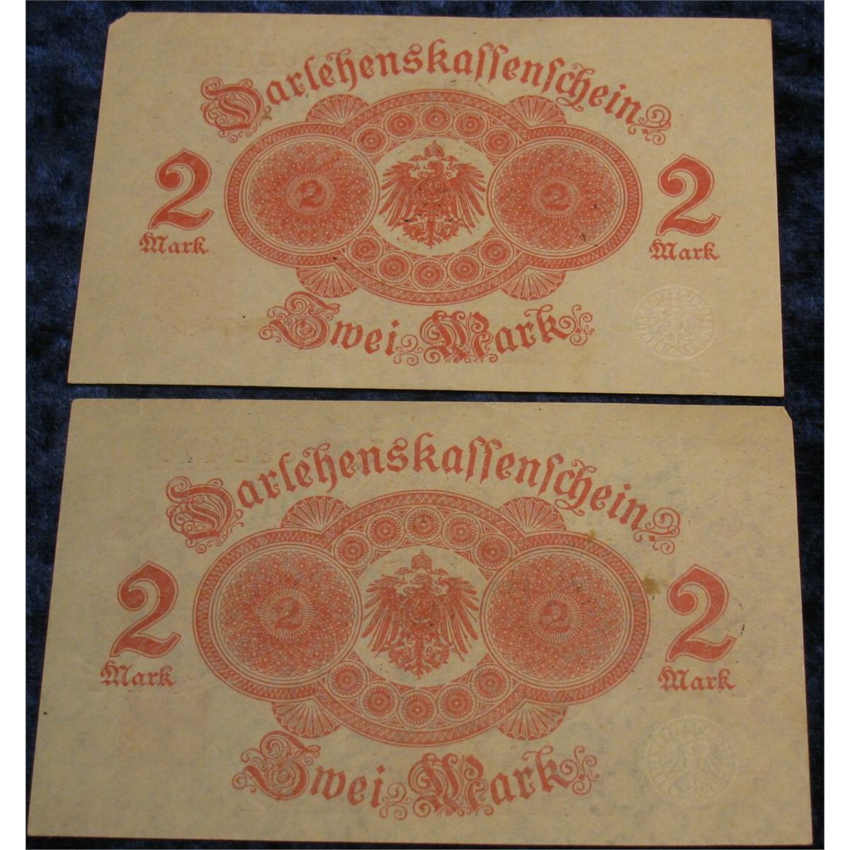 1407. (2) August 12, 1914 Germany 2 Mark Notes. EF-AU.