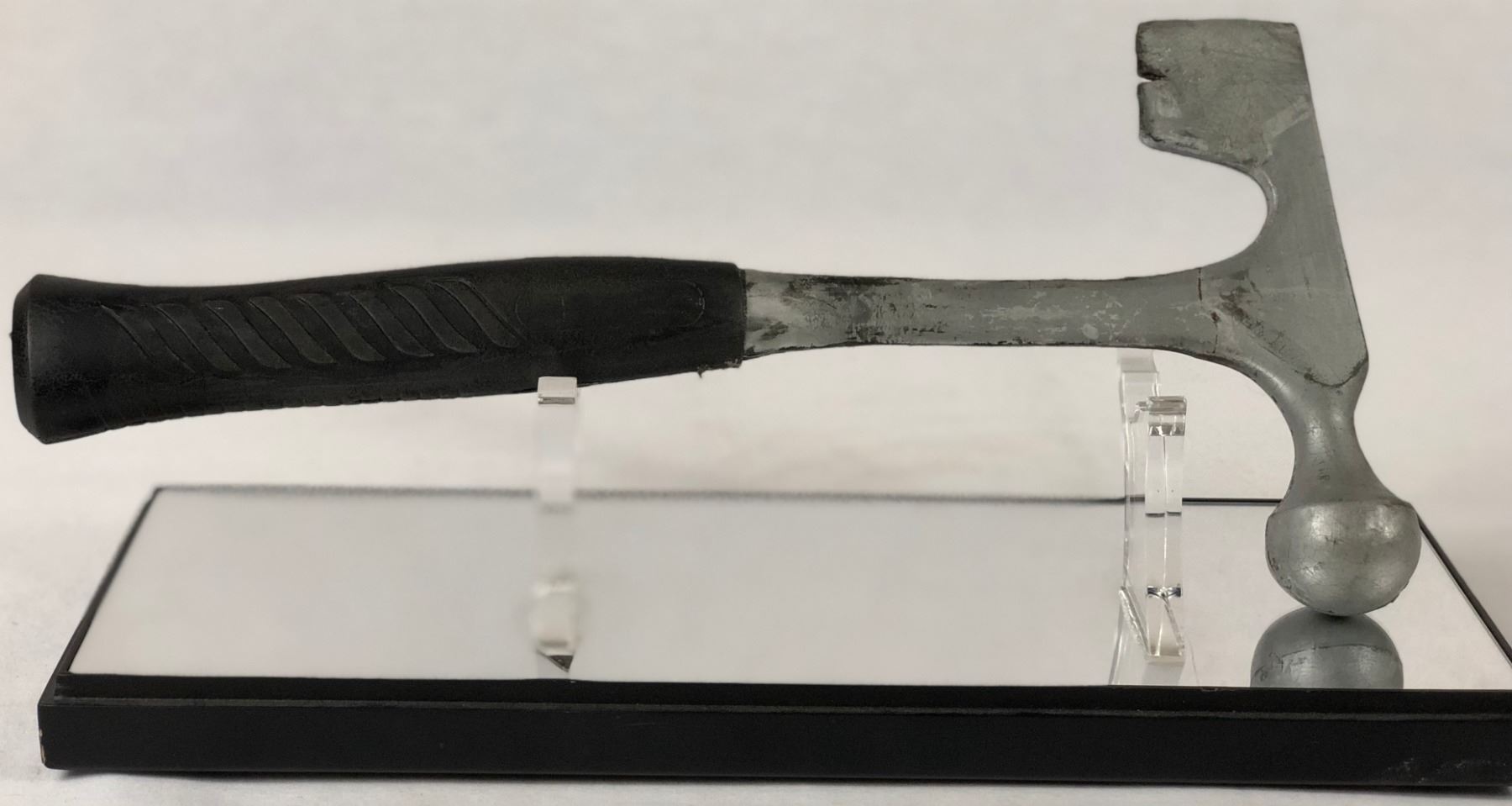 Screen used prop hammer used in the the production of 1408 (2007), the psychological horror movie where, a man who specializes in debunking paranormal occurrences checks into the fabled room 1408 in the Dolphin Hotel. Soon after settling in, he confronts genuine terror.Made of rubber.