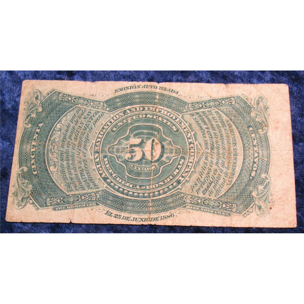 1408. June 25, 1886 "The Aguan Navigation and Improvement Company" 50 Centavos note. VG.
