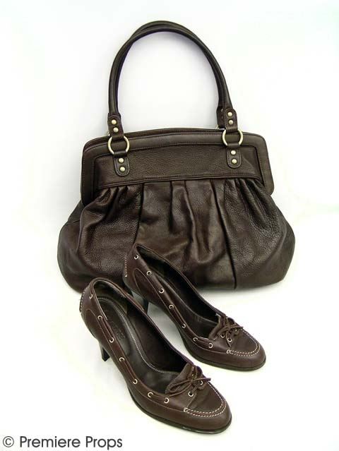 Lily's (Mary McCormack) navy "Marc Jacobs" ribbed L/S shirt (size M). Light grey Nicole Farhi" pea coat (size 8). Dark brown "Warehouse" pants (size 14). Large brown "H&M" purse. Brown "Bally" round toe pumps. Small gold hoop earrings. Gold chain necklace with heart locket and St. Christopher. Dark gold ring with brown stone. Rectangular light brown face "Empororio Armani" watch, brown leather band. (Screen worn / Hotel corridor scene)
