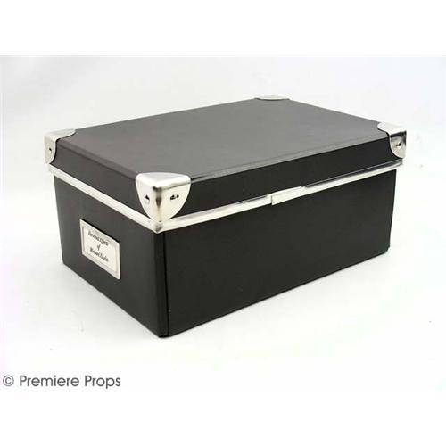 A black rectangular box filled with traces of charred black residue with a tag that reads: "Personal Effects of Michael Enslin." This prop from the set of 1408 would make a bone-chilling addition to any fan's collection! (1408_2058)