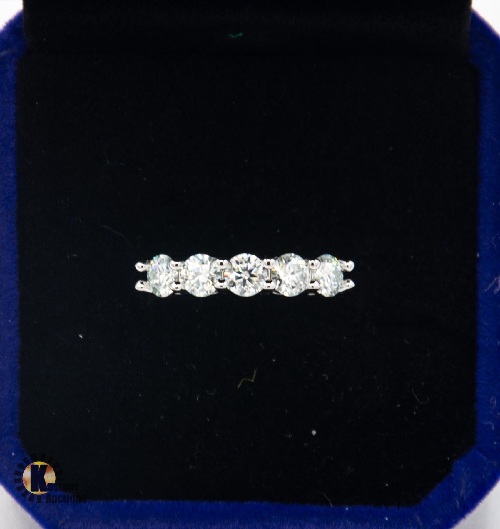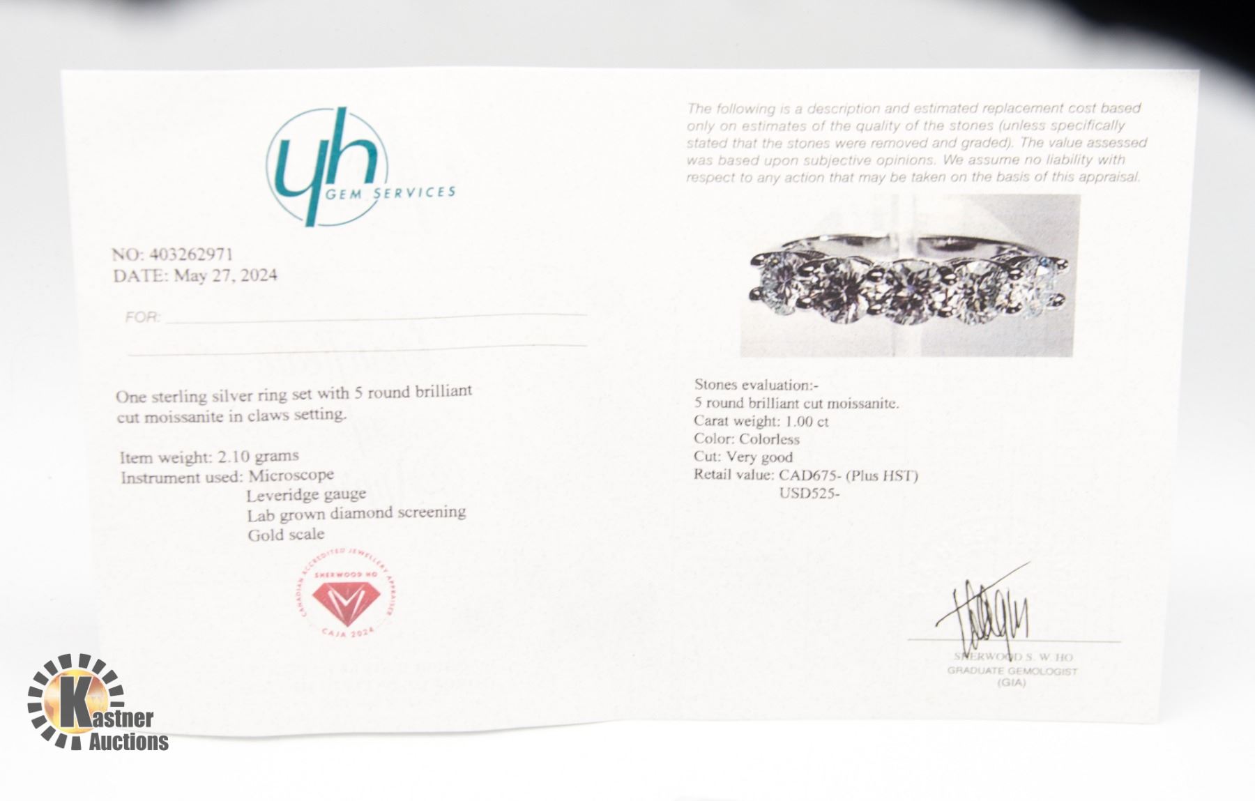 MOISSANITE STONES VVS D COLOR SET IN A ROW SET IN 925 SILVER RING SIZE 7 RETAIL VALUE $675.00 **ALL ITEMS MUST BE REMOVED BY 5PM SATURDAY, DECEMBER 21ST 2024. ALL REMAINING ITEMS WILL BE SUBJECT TO A $6.00 PER DAY STORAGE CHARGE. ANY ITEMS REMAINING AFTER MONDAY, JANUARY 6TH 2025 WILL BE CONSIDERED FORFEITED. NO REFUNDS WILL BE ISSUED FOR FORFEITED ITEMS. TO SCHEDULE A PICK UP APPOINTMENT CLICK HERE