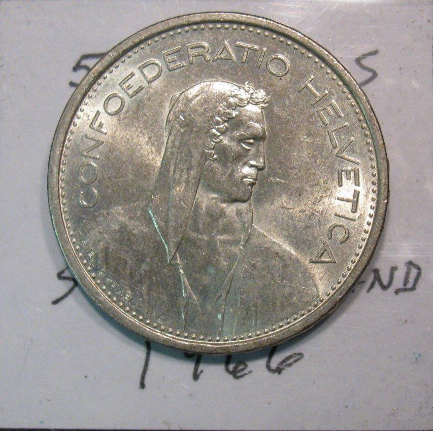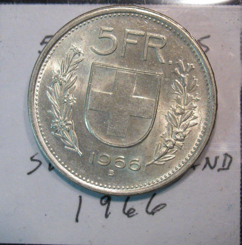 1409. 1966 B Switzerland 5 Francs Silver .4027 ASW. BU