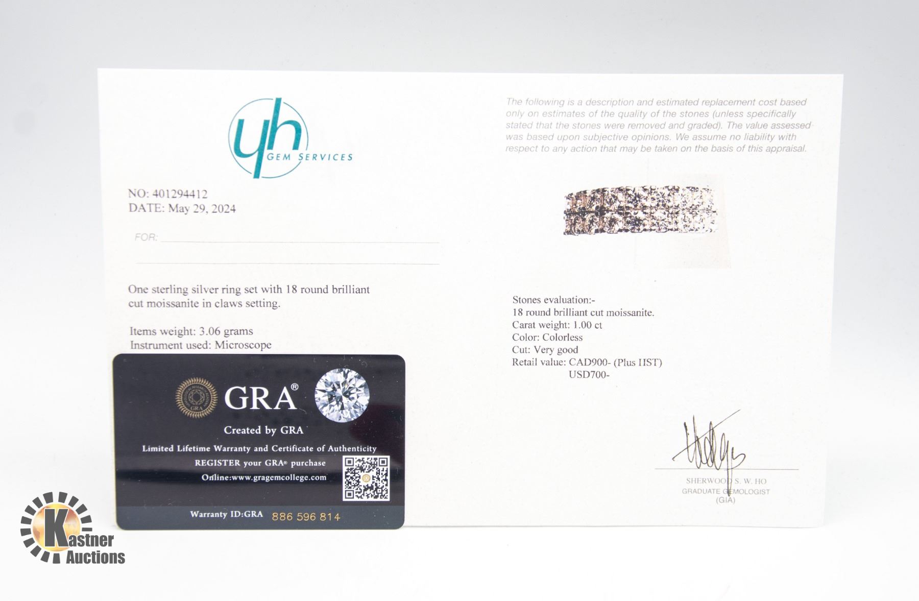 CUT MOISSANITE VVS D SET IN 925 SILVER RING SIZE 8 RETAIL VALUE $900.00 **ALL ITEMS MUST BE REMOVED BY 5PM SATURDAY, JUNE 29TH 2024. ALL REMAINING ITEMS WILL BE SUBJECT TO A $6.00 PER DAY STORAGE CHARGE. ANY ITEMS REMAINING AFTER MONDAY, JULY 15TH 2024 WILL BE CONSIDERED FORFEITED. NO REFUNDS WILL BE ISSUED FOR FORFEITED ITEMS. TO SCHEDULE A PICK UP APPOINTMENT CLICK HERE