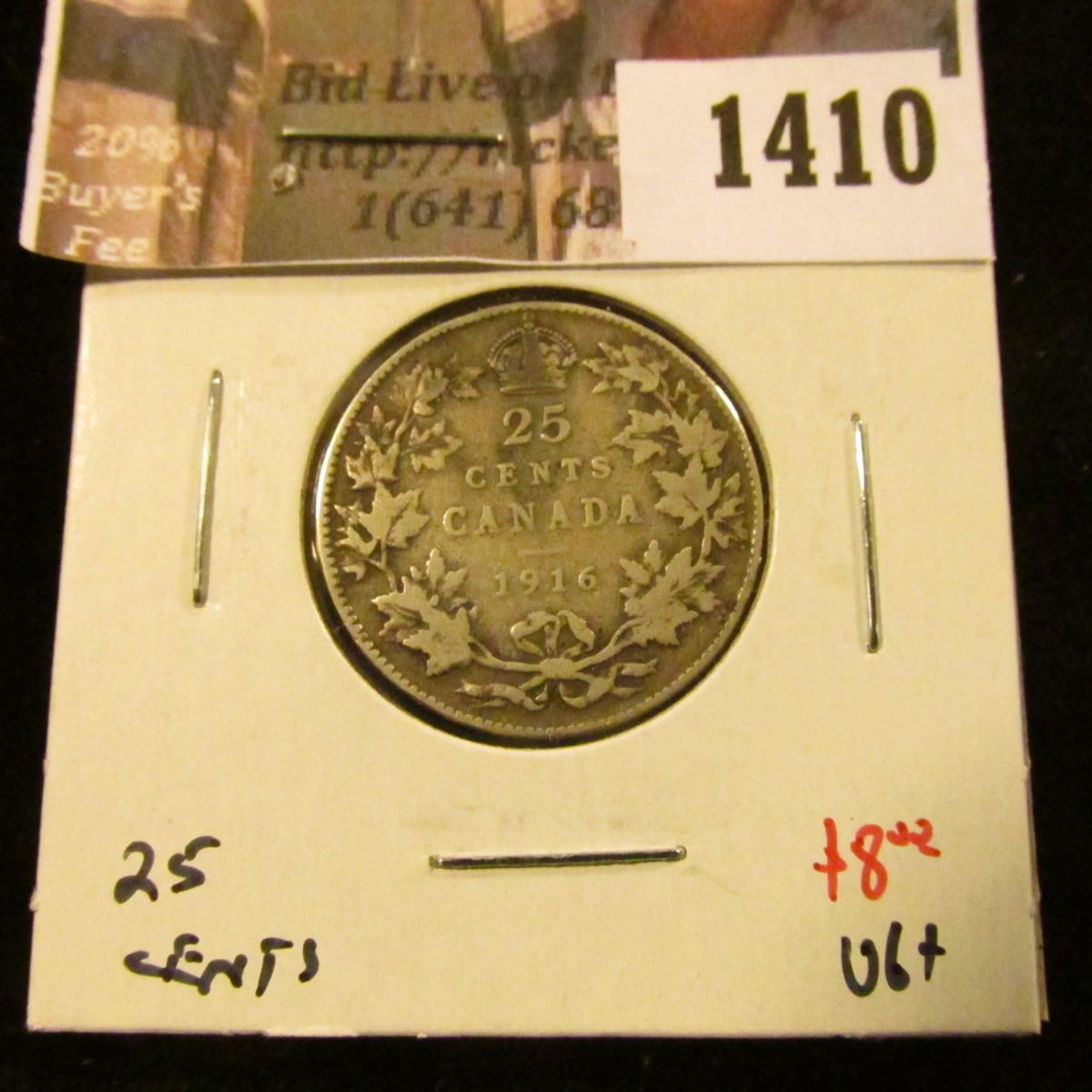 1410 . 1916 Canada 25 Cents, VG, value $8