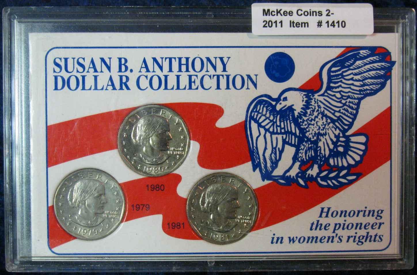 1410. 1979P, 80P & 81S Sacagawea Dollars BU in Holder.