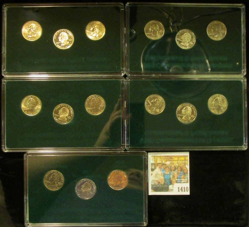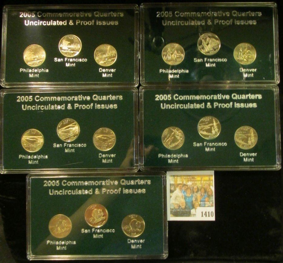 1410 _ 2005 Proof & Uncirculated P, D, & S Statehood Quarters in five cases and stored in a box.