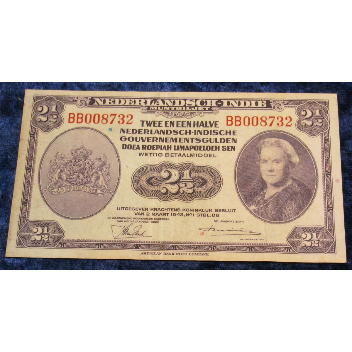 1410. March 2, 1943 Netherlands Indies 2 1/2 Gulden Bank Note. VF.
