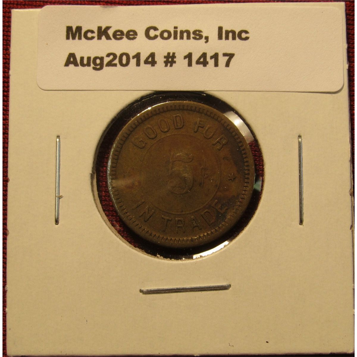 1417. Boyd Wright Good For 5¢ in Trade, counter-Stamped R over the W on reverse