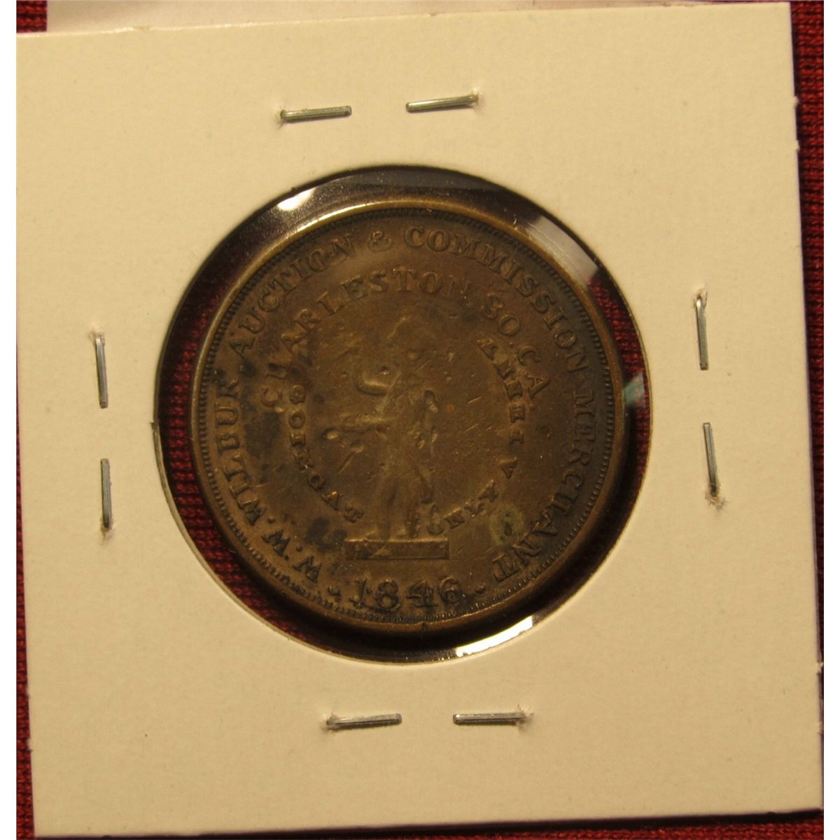 1419. 1846 W.W. Wilbur Auction & Commission Merchant / Merchants & Manufacturers Agent – Collection Broker Charleston, SC / slavery related token