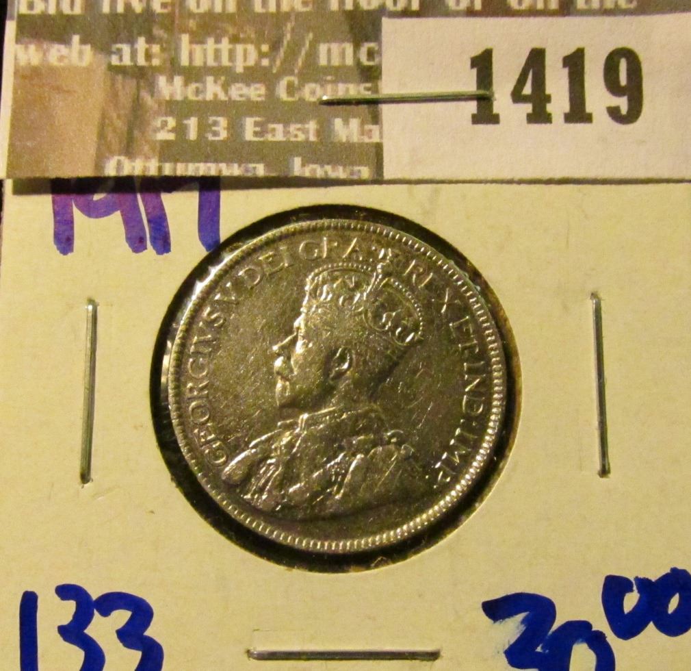 1917 C Newfoundland Twenty-Five Cent Piece. VF-EF.
