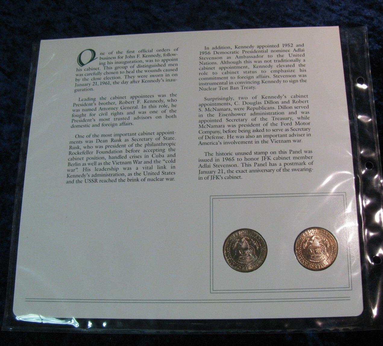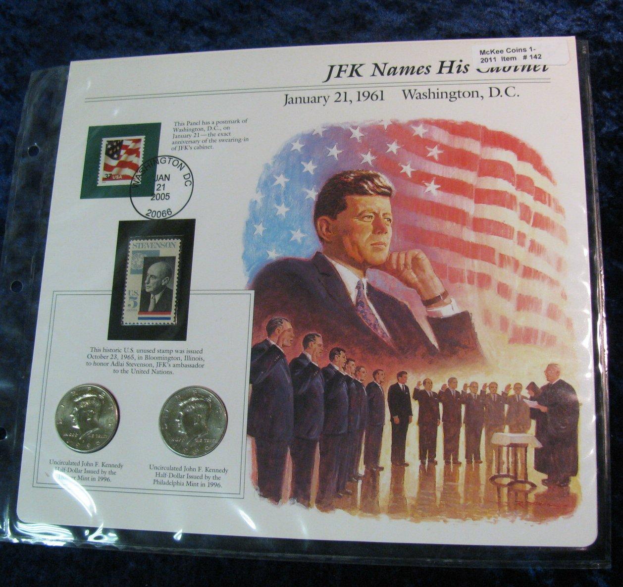 142. 1996 P & D Kennedy Set of Half Dollars in a special display board Postmarked 2005.