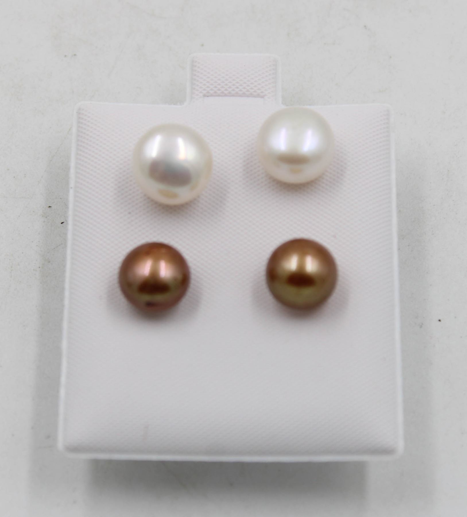 .925 STERLING SILVER /2 PAIR/WHITE & GOLDEN /7.7 TO 9 MM