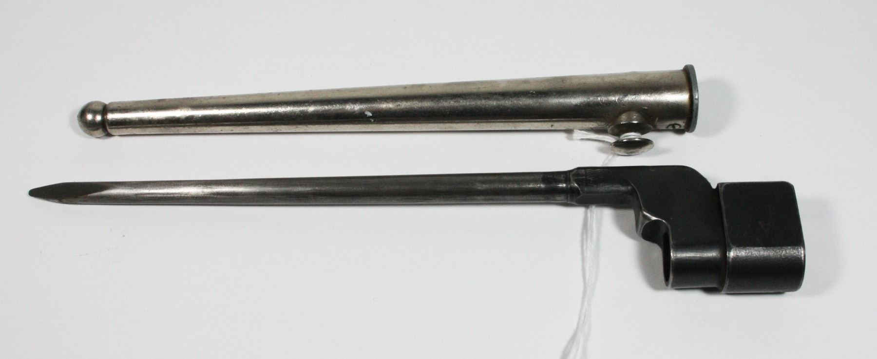SPIKE BAYONET W/ MISMATCHED CHROMED PARADE SCABBARD UNITED KINGDOM ENGLAND CANADA COMMONWEALTH EMPIRE FOR ENFIELD RIFLE WORLD WAR TWO KOREAN WAR LEE ENFIELD