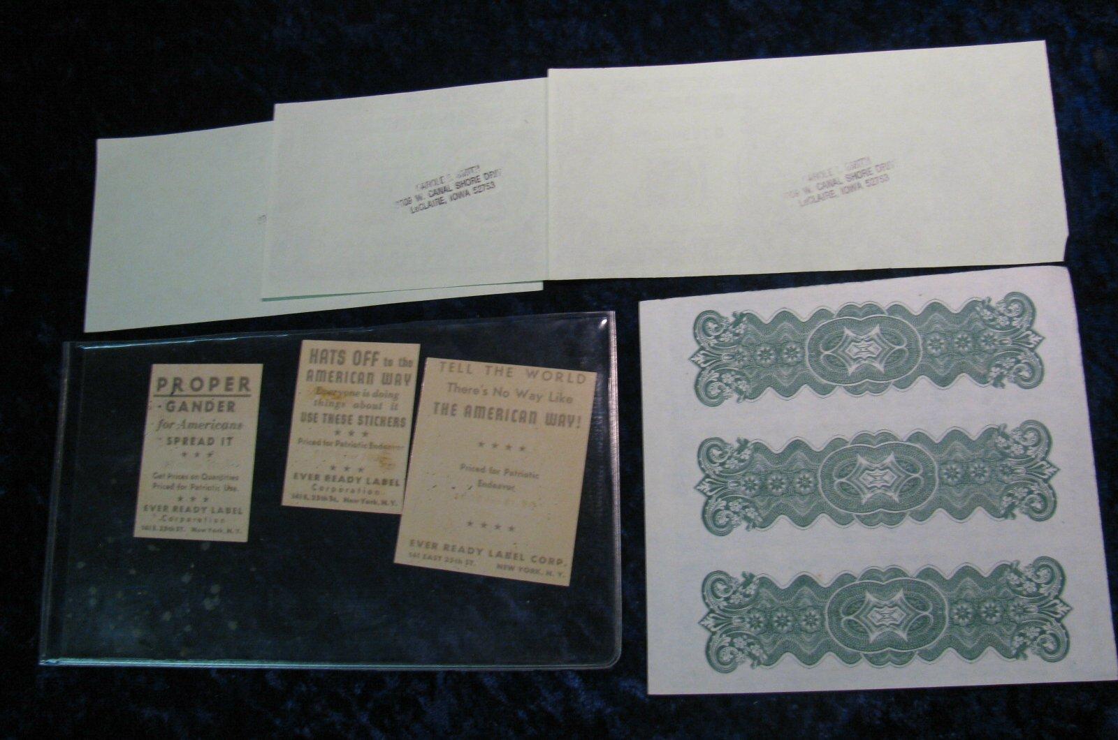 1420. (3) PGA $1 Script; No. 1, 2, & 3 Coupon Walkill Stump and Land Clearing District Coupons; & (3) Ever Ready Label Corp. Advertising Stickers.