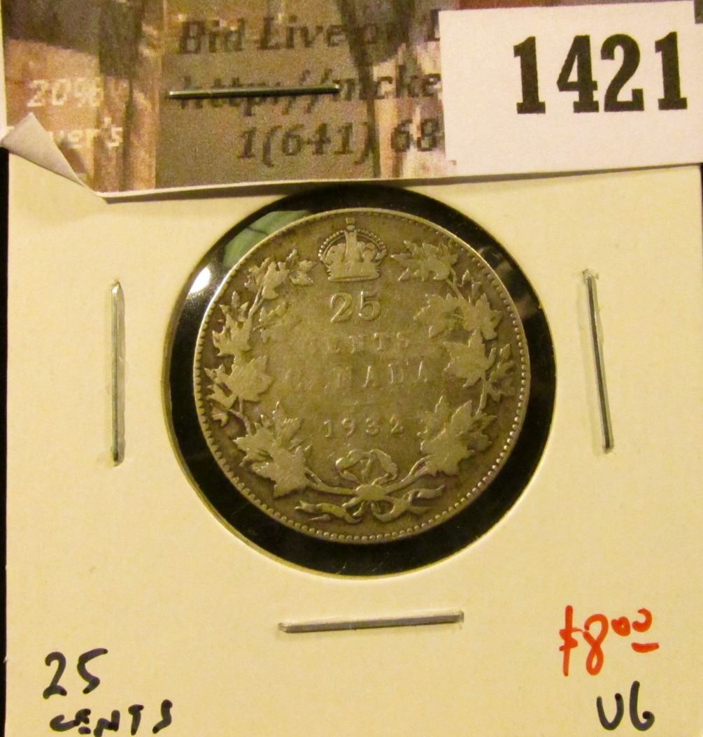 1421 . 1932 Canada 25 Cents, VG, value $8