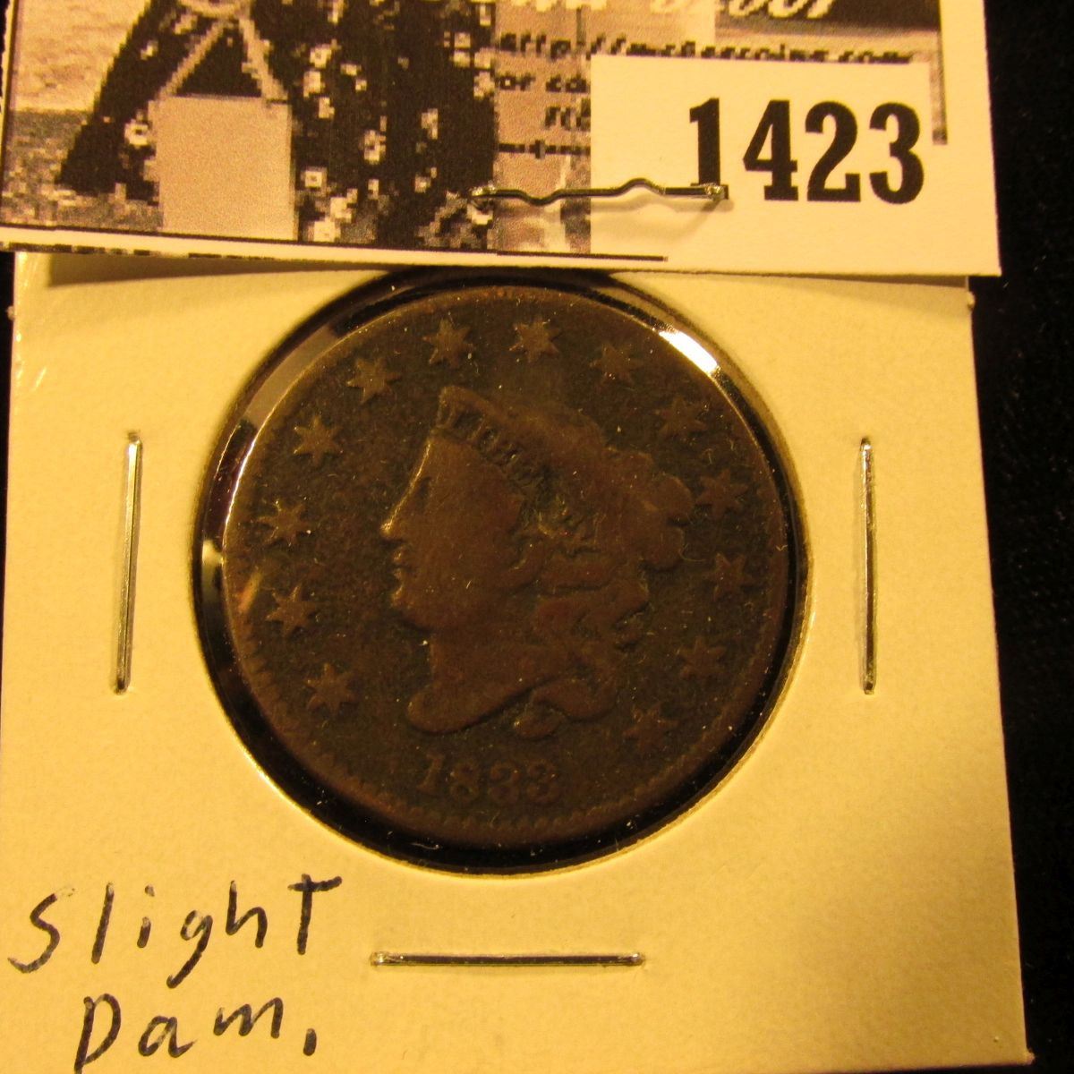 1423 . 1833 U.S. Large Cent, VG. Central ding on obverse.