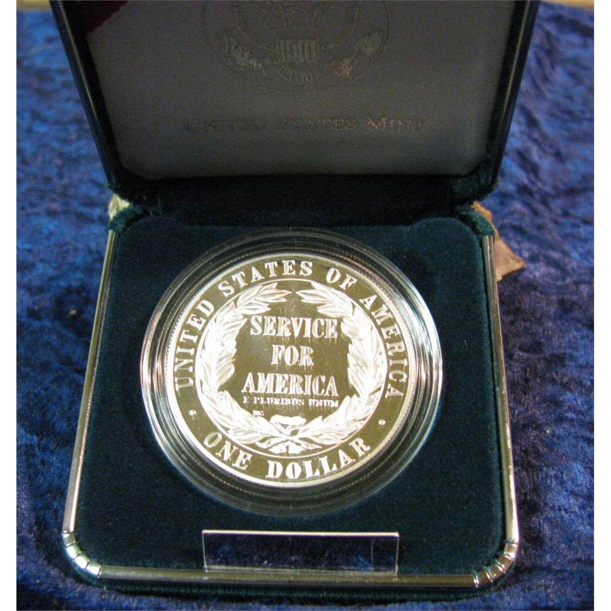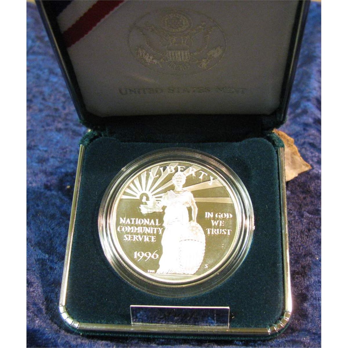 1423. 1996 S National Community Service Commemorative Dollar. Proof. In original box as issued.