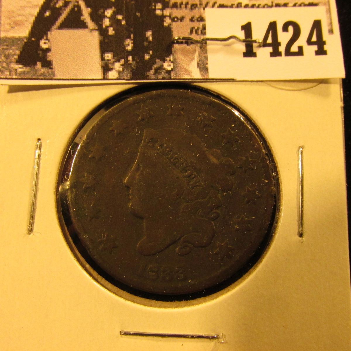 1424 . 1833 U.S. Large Cent, VG. Couple of rim ticks.