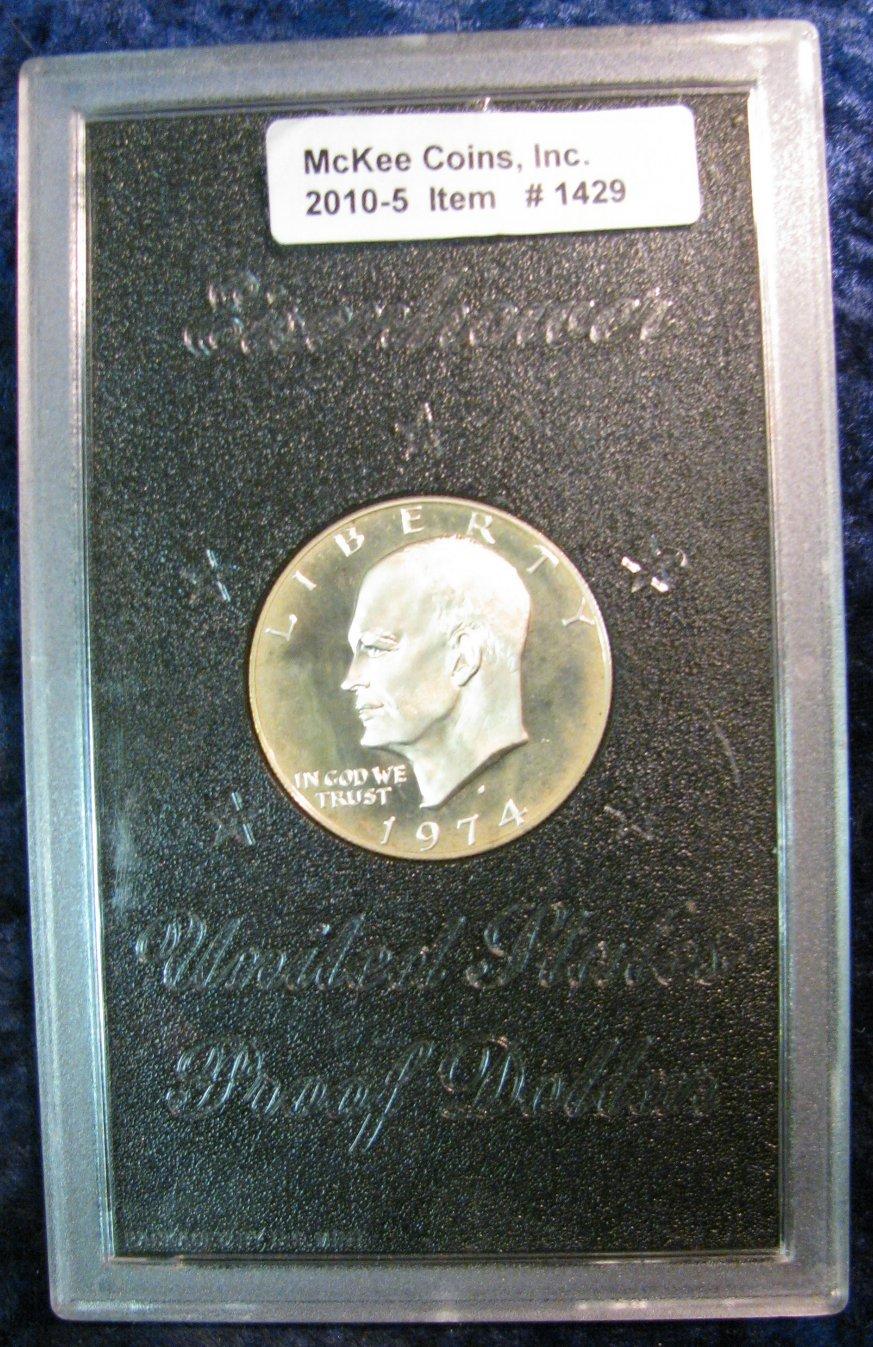 1429. 1974 S Silver Proof Eisenhower Dollar in hard plastic case of issue.