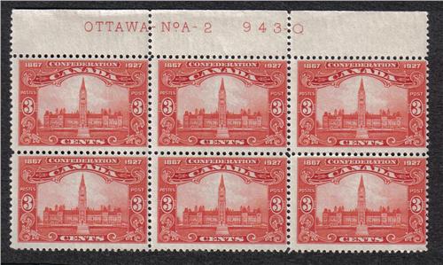 #143 MINT NH UPPER PLATE No2 BLOCK OF 6 C$200,00