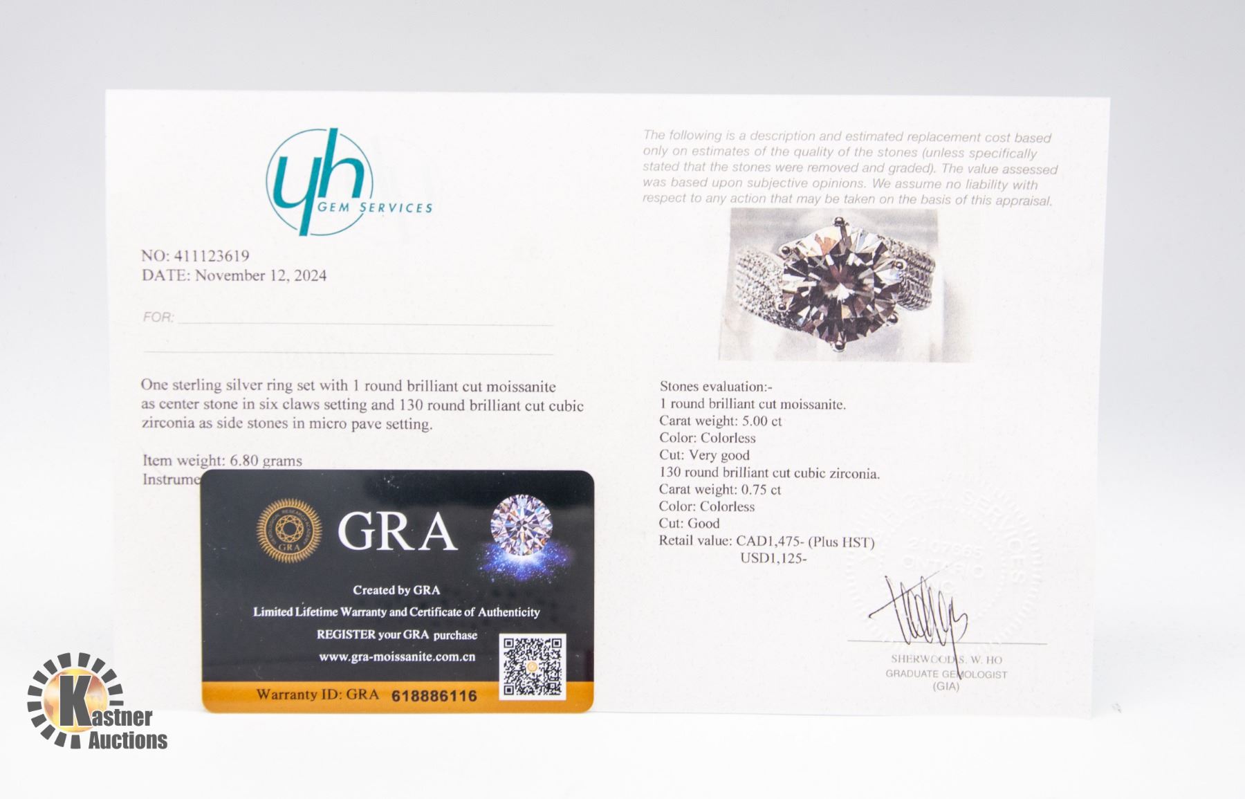 BRILLIANT CUT MOISSANITE STONE VVS D COLOR SET WITH 130 ROUND BRILLIANT CUT CZ’S SET IN 925 SILVER RING SIZE 6 RETAIL VALUE $1,475.00 **ALL ITEMS MUST BE REMOVED BY 5PM SATURDAY, JANUARY 4TH 2025. ALL REMAINING ITEMS WILL BE SUBJECT TO A $6.00 PER DAY STORAGE CHARGE. ANY ITEMS REMAINING AFTER MONDAY, JANUARY 27TH 2025 WILL BE CONSIDERED FORFEITED. NO REFUNDS WILL BE ISSUED FOR FORFEITED ITEMS. TO SCHEDULE A PICK UP APPOINTMENT CLICK HERE