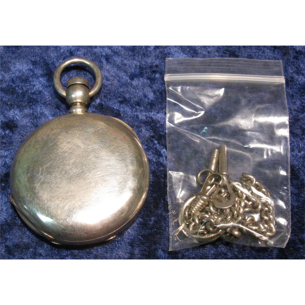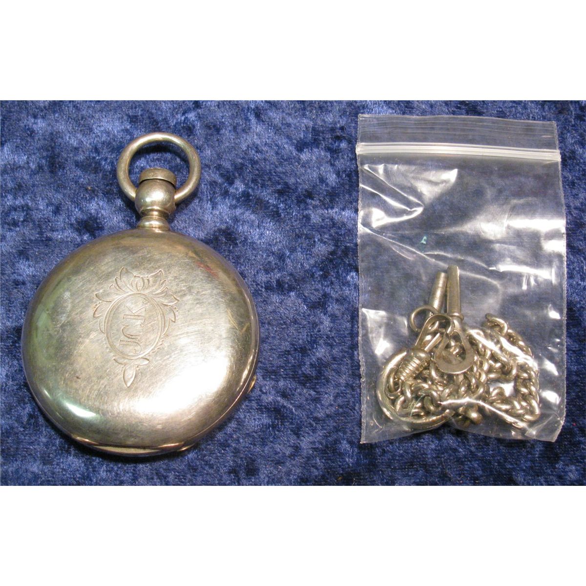 1432. Coin Silver Hunting Case Rockford Watch Co. Keywind Pocket Watch. Runs for short periods of time. Includes two keys and a Watch Chain, which appear to be silver as well.
