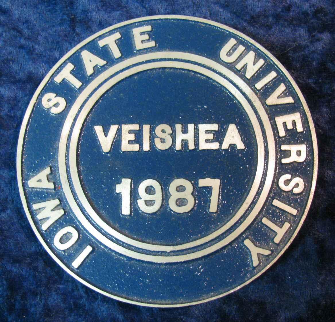 1436. 9 3/4" 1987 Veisha, Iowa State University Plack.