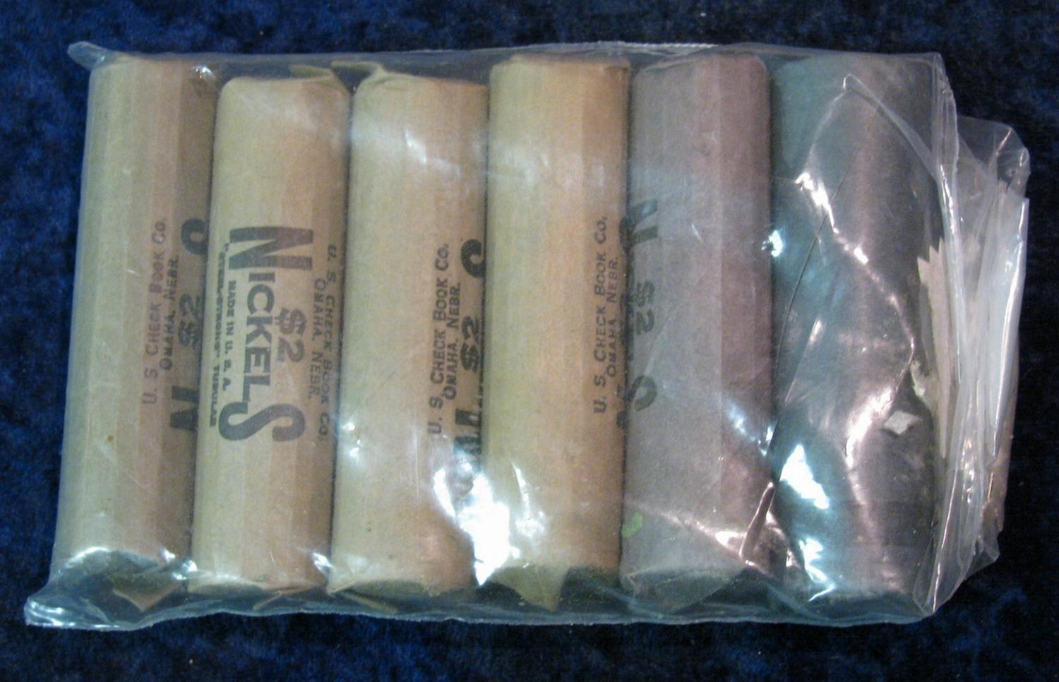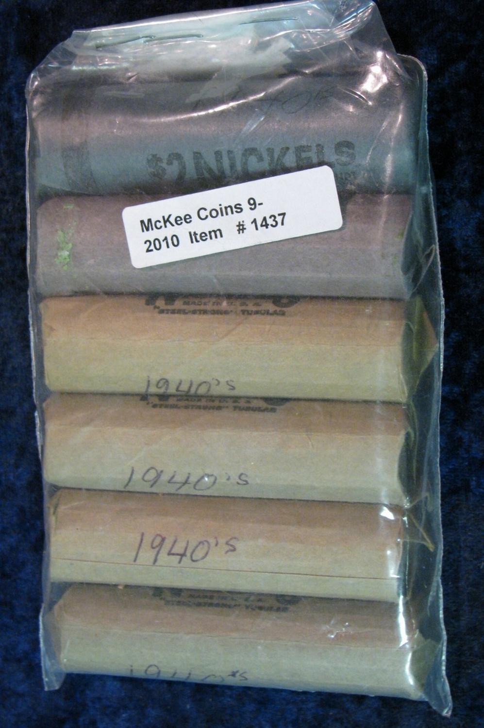 1437. (6) Rolls of Jefferson Nickels dating in the forties. ($12.00 face)