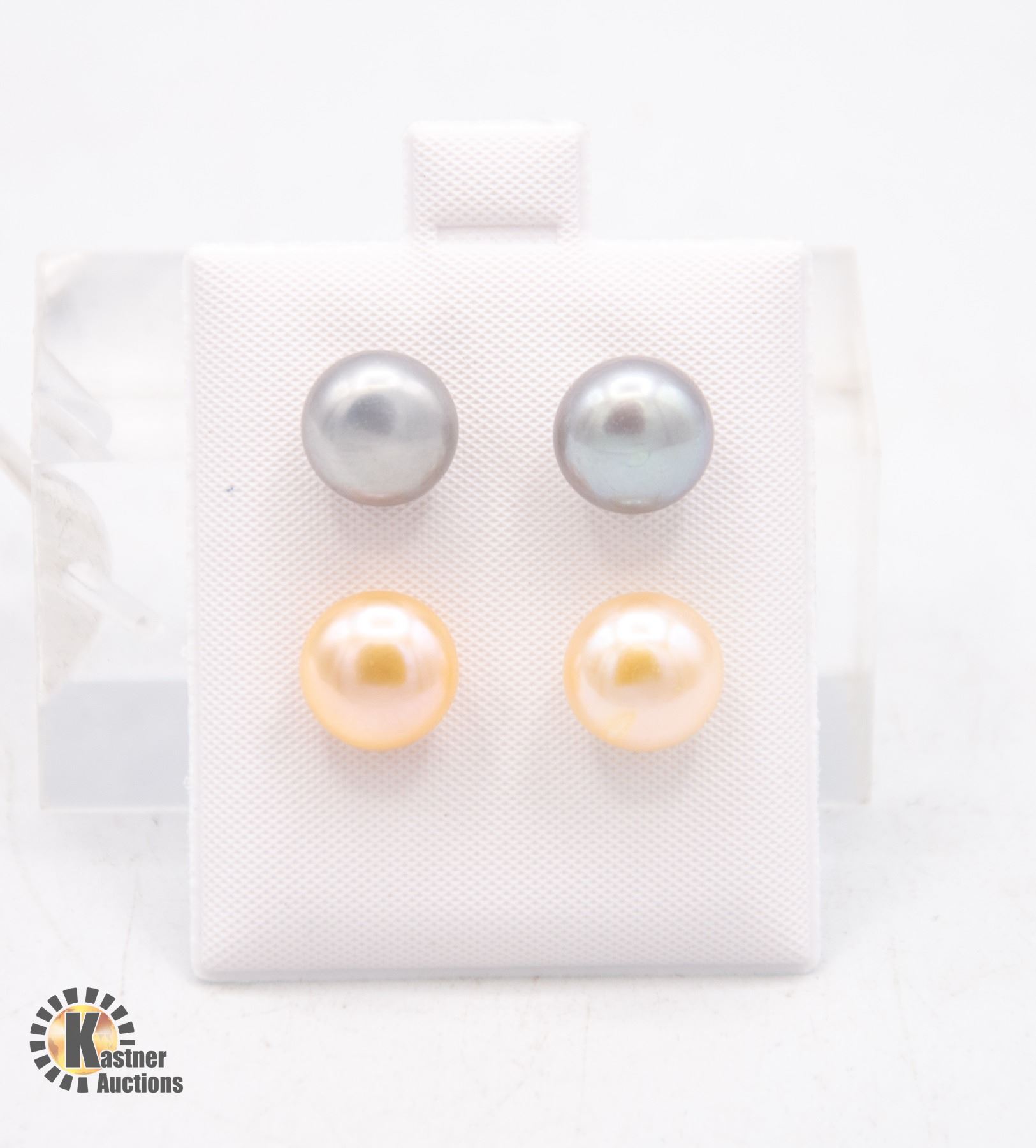 .925 STRLING SILVER / 9-9.5 MM/GRAY & PINK