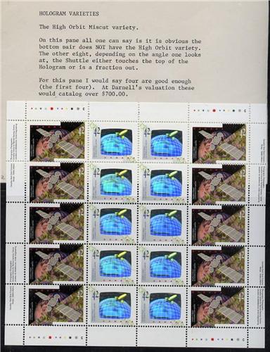 #1441-1442iii XF-NH COMPLETE SHEET OF 20 *HIGH ORBIT MISCUT VARIETY*