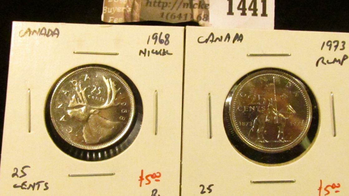 1441 . (2) Canada 25 Cents, 1968 Nickel, 1973 RCMP, both BU, value
