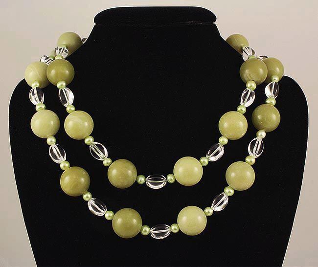 1442.00 CTW 18 " GRAPE LIKE BEADS NECKLACE **|**|** 18 INCHES LONG 2 ROW NECKLACE WITH 20MM ROUND GREEN BEADS WITH METAL LOCK ; MSRP: $200