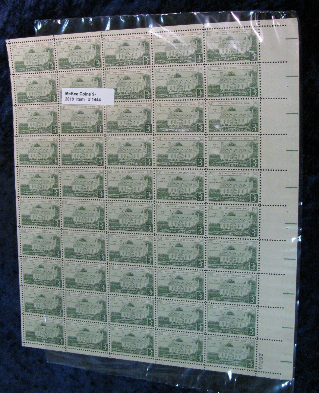 1444. Mint Sheet of Scott # 1108 "1758-1958 Gunston Hall Home of George Mason"