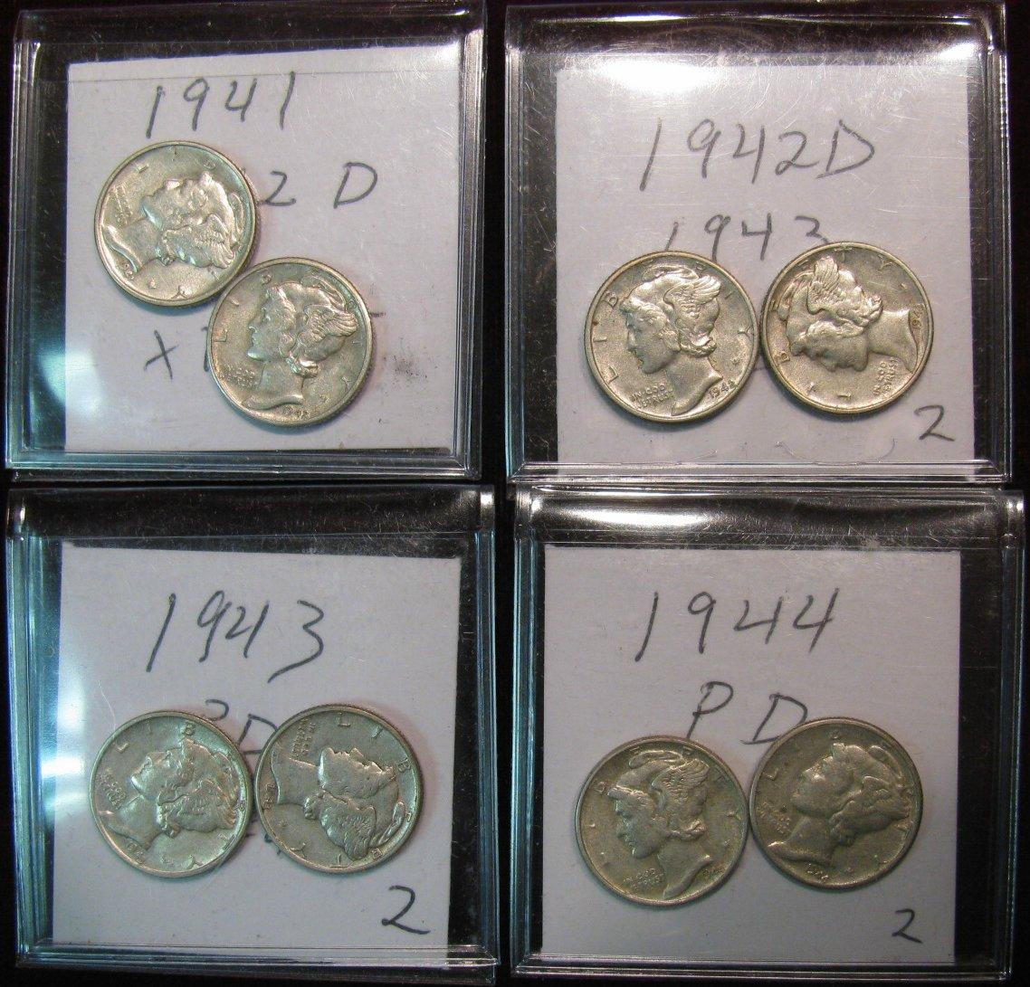 1445, (8) Assorted Date Mercury Dmes 1941-44. XF
