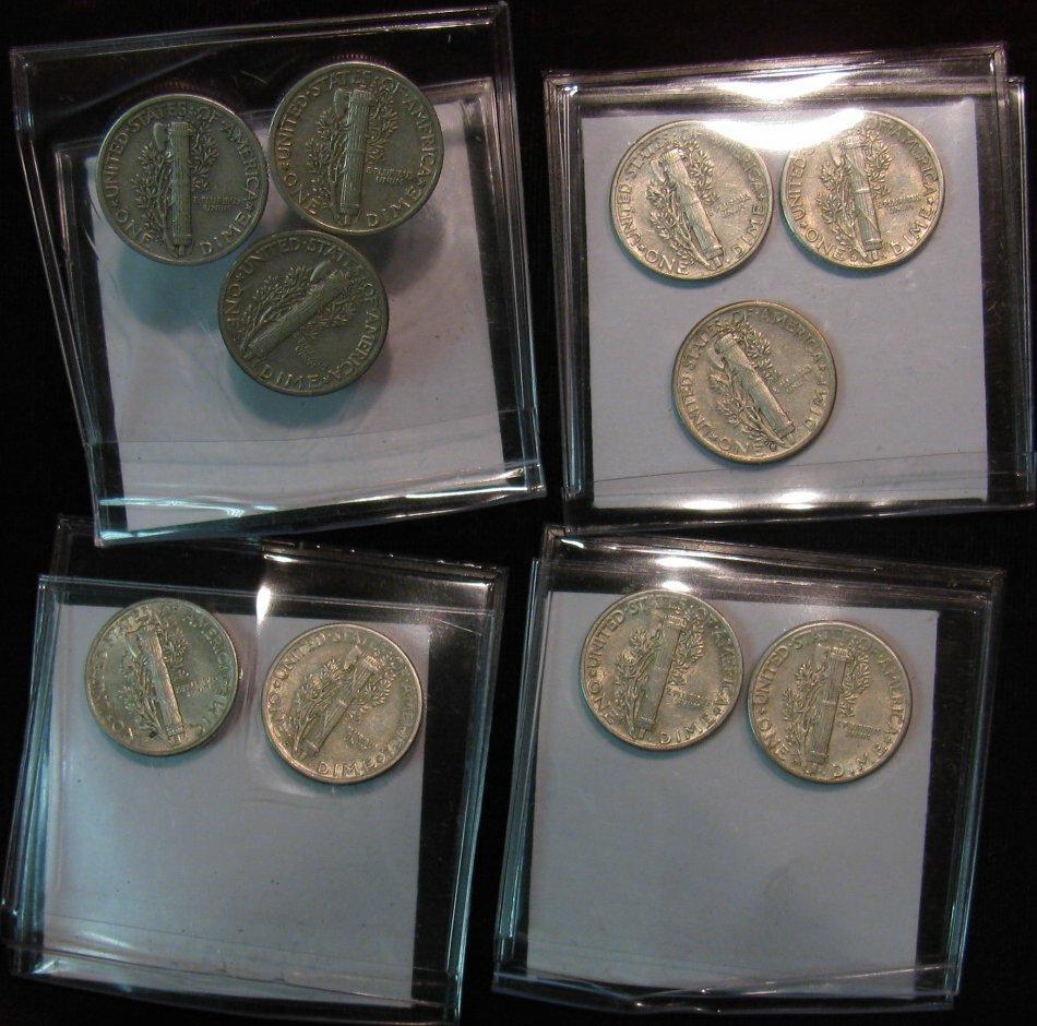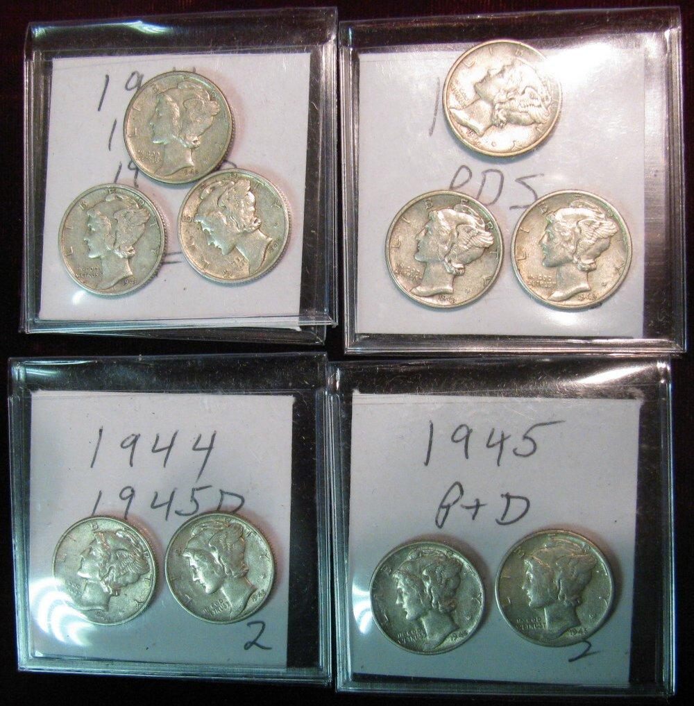 1446. (10) Assorted Date Mercury Dimes 1941-145. XF