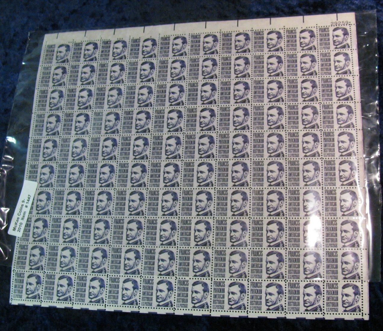 1447. Mint Sheet of Scot # 1281 "Francis Parkman American Historian" .03c Stamps. (face value $3.00)