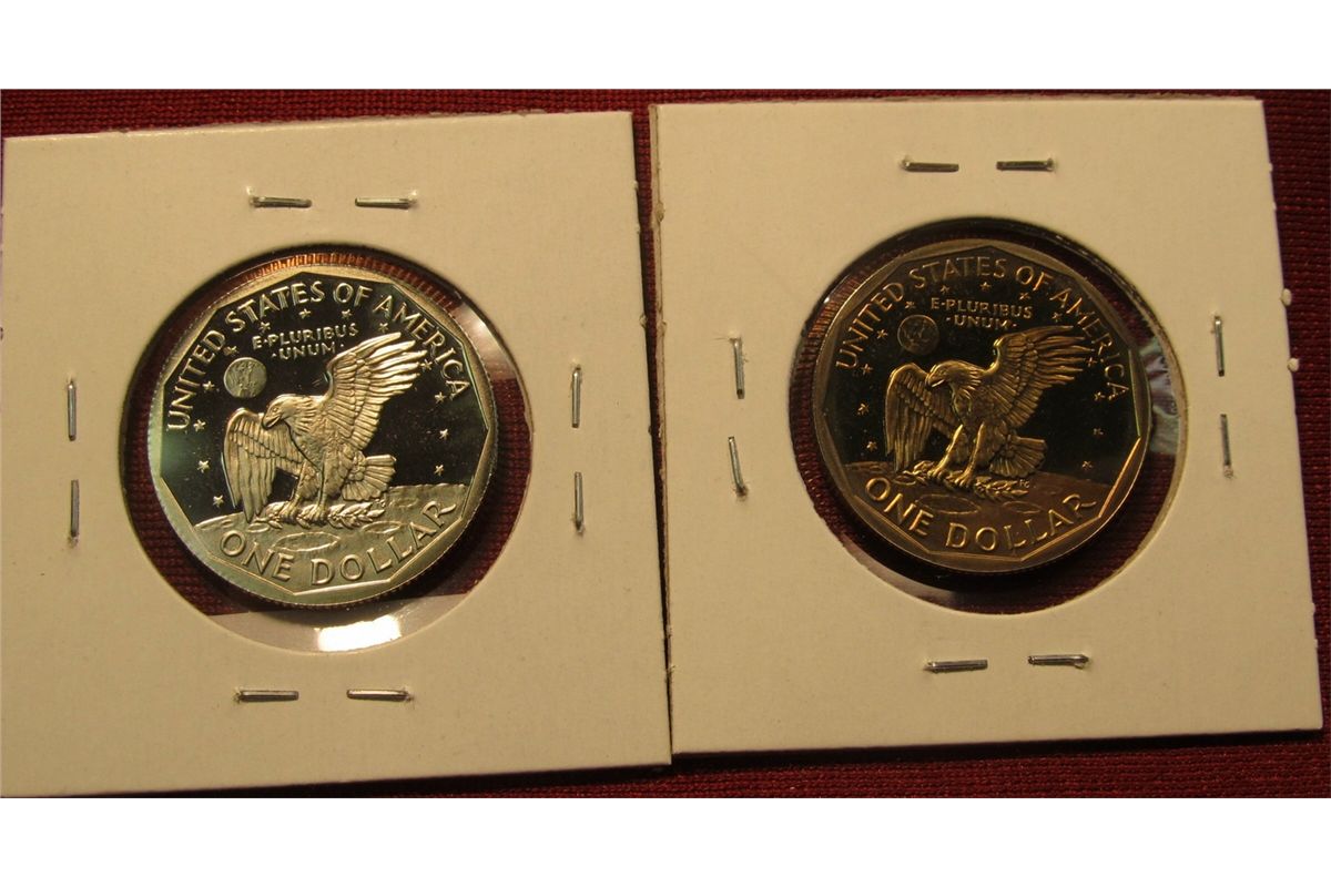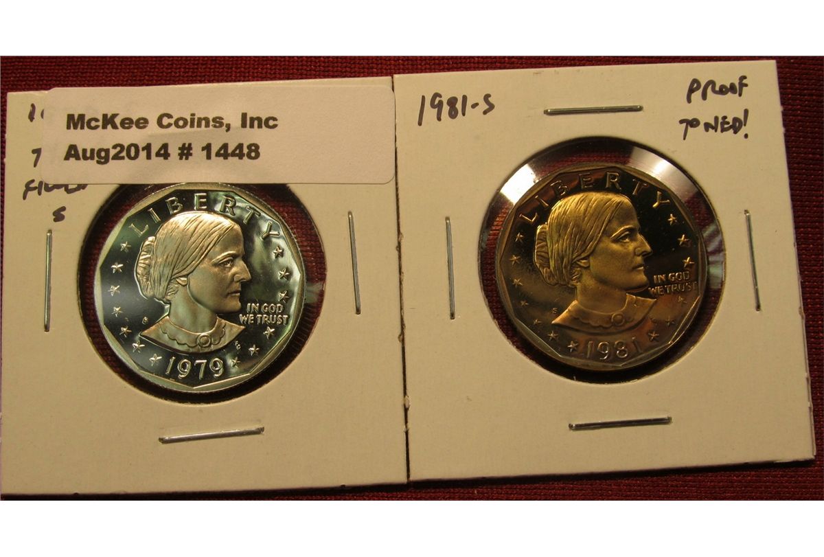1448. 2 Proof SBA Dollars - 1979-S type 1 filled S & 1981-S toned