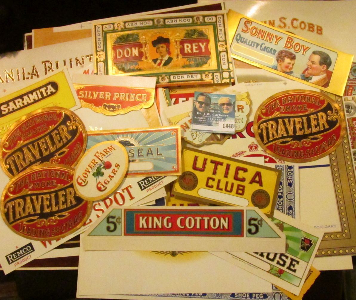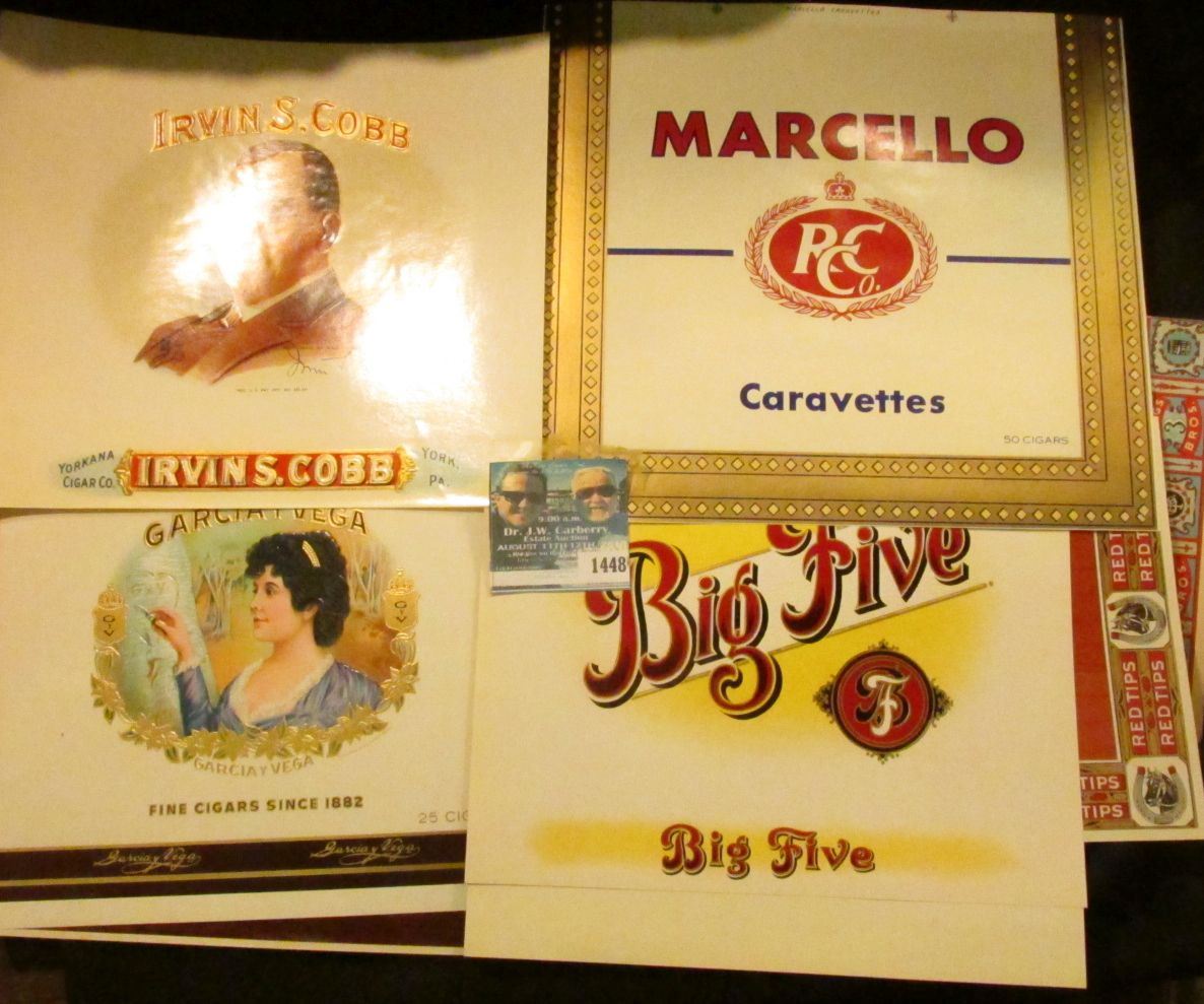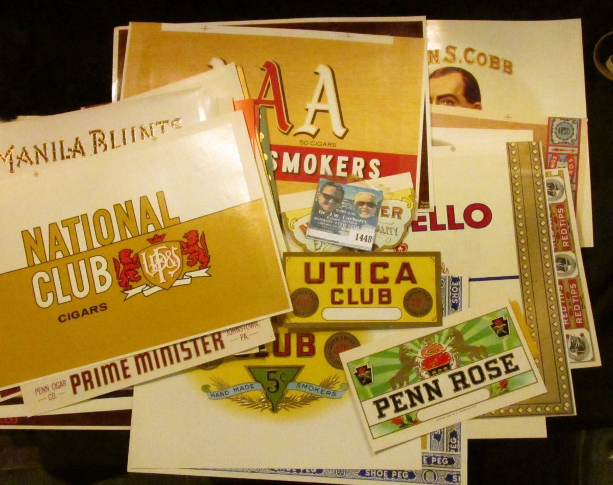 Approximately 50 most of which are different old Tobacco Box labels.