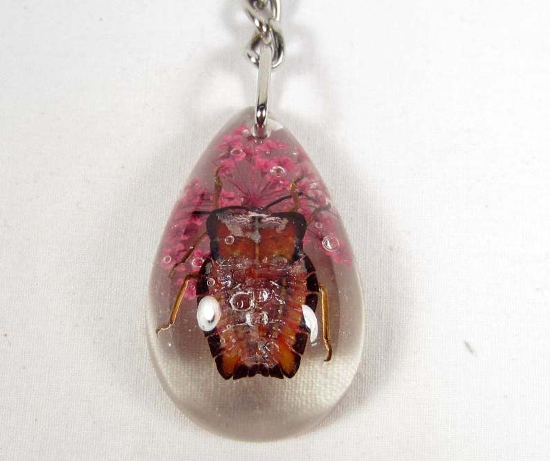 1448 - STINK BUG AND FLOWER IN CLEAR RESIN KEY CHAIN