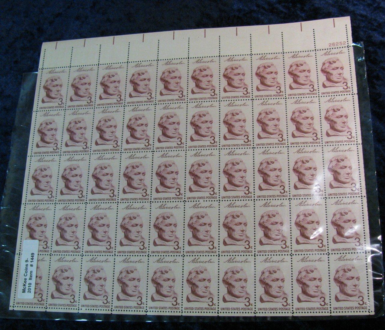 1449. Mint Sheet of Scott # 1114 "Lincoln Commemorative" .03c Stamps. (face value $1.50)