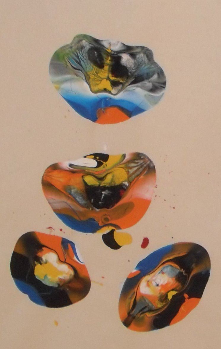 Titled 'LangdonArt April 14A 5 planets', this LangdonArt original painting on paper for wall at home or office or give it as a wonderful gift ; like an "LangdonArt SpaceScene" (Starwars) view each as imagination of planets or space modules invented from our Earth or from other planets invented by LangdonArt ; Artiste LangdonArt is a working artist painter creating his paintings for over 65 years now as Fine Arts career ; LangdonArt had many international, national or local exhibitions in art galeries and museums in Canada, Europe and in the USA ; purchase or buy it in order to use it to create a video or a film for YouTube, etc. ; image is about 7x4 inches ; if frame such as this one (about 17x15 inches) is desired if needed, there will be added charges ; each number represent represent DIFFERENT views you can play with, enjoy !