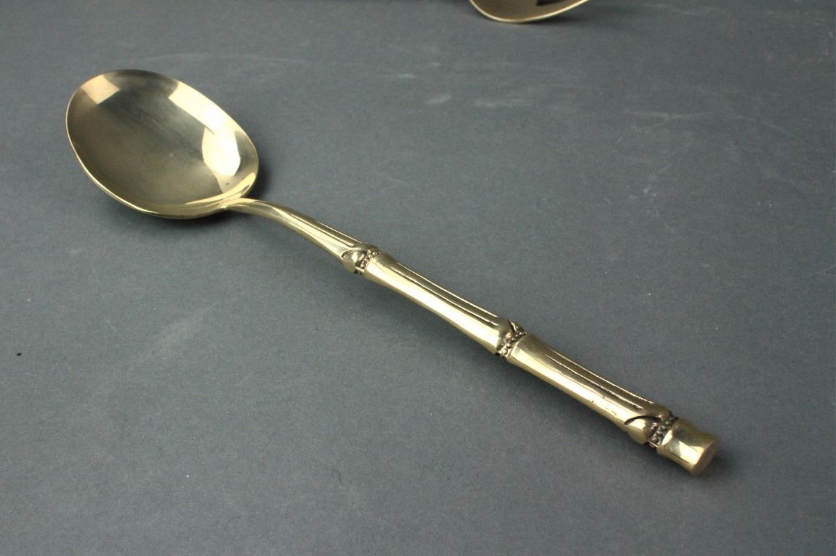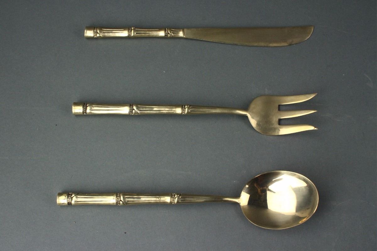 One hundred and forty-four gold plated tableware with original wood box; all unused and in plastic wraps; 45 cm X 43 cm, 11 kg