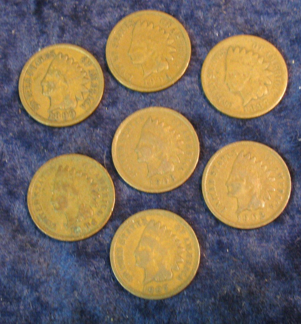 1452. 1887, 99, 1900, 02, 03, 04, & 07 Indian Cents. G-VG. (7 pcs.).