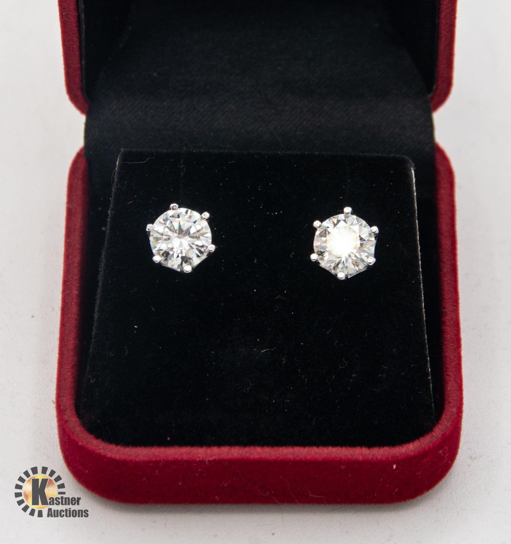 ROUND BRILLIANT CUT MOISSANITE STONES VVS D COLOR SET IN CENTER OF 4 CLAW BASKET HEAD SET IN 925 SILVER EARRINGS WITH SCREW BACKS RETAIL VALUE $1,150.00 **ALL ITEMS MUST BE REMOVED BY 5PM SATURDAY, JANUARY 4TH 2025. ALL REMAINING ITEMS WILL BE SUBJECT TO A $6.00 PER DAY STORAGE CHARGE. ANY ITEMS REMAINING AFTER MONDAY, JANUARY 27TH 2025 WILL BE CONSIDERED FORFEITED. NO REFUNDS WILL BE ISSUED FOR FORFEITED ITEMS. TO SCHEDULE A PICK UP APPOINTMENT CLICK HERE
